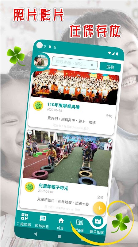 The system provides a huge cloud space, as a kindergarten activity album, not only can share photos with the same school or class, but also provide exclusive video shooting and playback functions, which truly satisfies the most desired functions of the parents of school children and leaves the most beautiful childhood for children Memories.