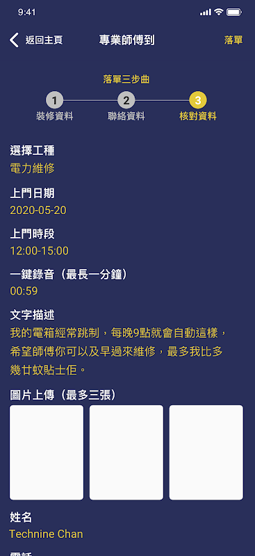 客戶可上傳錄音/圖片以解釋所需服務,加快師傅跟進時間