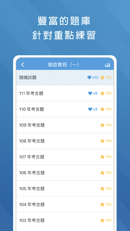 An app designed for students who are ready to take the exam with a clean, easy-to-use interface.
