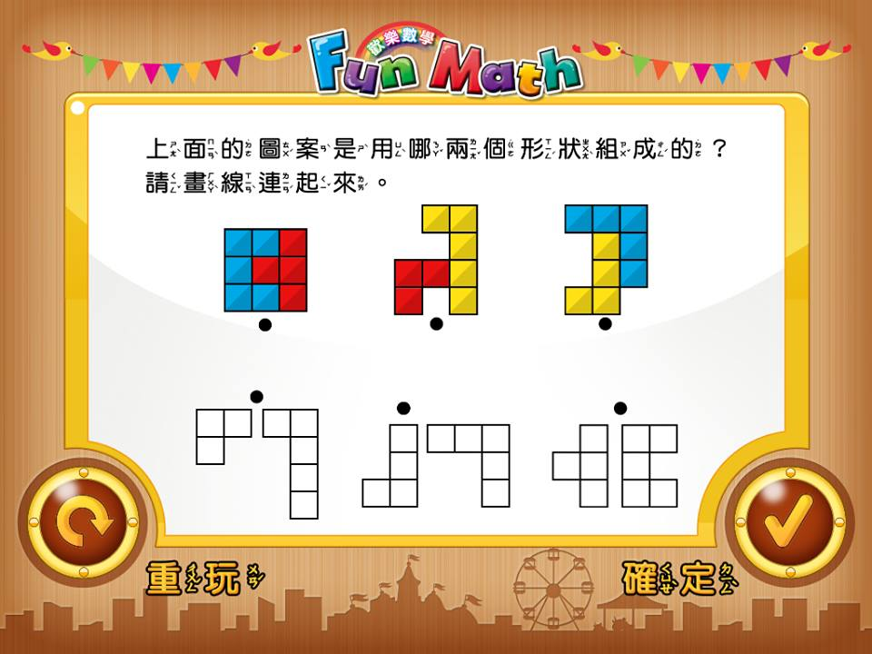 「小康軒 Fun Math 歡樂數學」含括「數與量」、「圖形」、「空間」、「邏輯」等數學概念,共分為小班(上、下)、中班(上、下)、大班(上、下)6 個數學學習App,幼兒透過此 App 將學習到以下數學概念:
