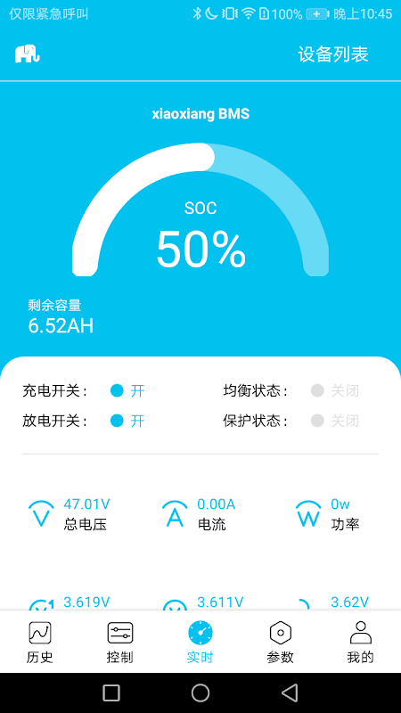1.历史:展示电池的历史动态曲线图,电流,电压,电容,温度。