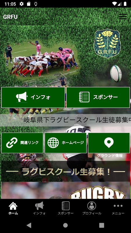 岐阜県におけるラグビーフットボール競技の健全な発達、及びその普及を図ることを目的とした岐阜県ラグビーフットボール協会『GRFU』の公式アプリです。