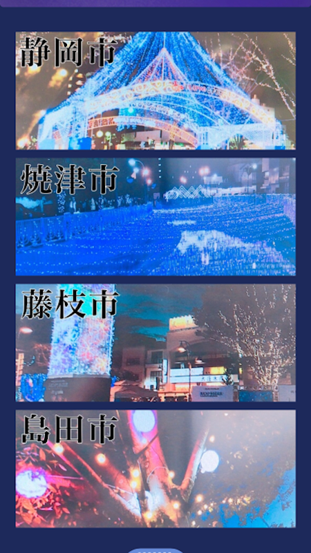 静岡県中部5市2町連携中核都市圏事業「しずおか中部連携事業」の一つ「JR駅前等賑わい創出事業」の創出イベントとして行われる静岡市、焼津市、藤枝市、島田市のイルミネーションの情報をまとめたアプリケーションです。