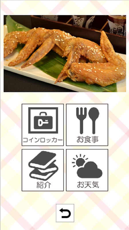 コインロッカー・お食事・紹介・お天気のボタンをタップするとそれぞれのページに変わります。