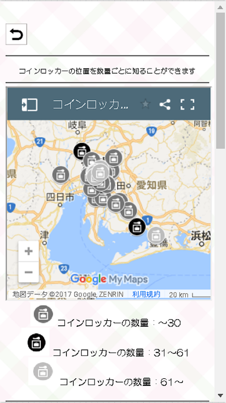 This app is tourism app of Nagoya, Aichi Prefecture.You can understand the position of the coin lockers located in Nagoya city.