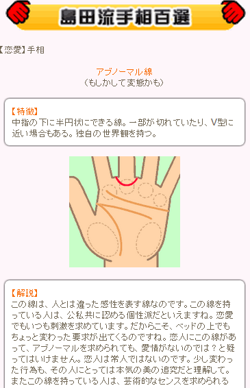このアプリでは、そんな独特な手相を100種以上盛り込み、
