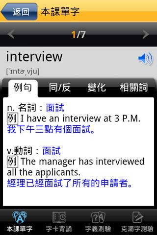 主題式單字搭配例句與多種互動式練習與測驗(字卡背誦、字義測驗、克漏字測驗),幫助您連接單字的形、音、義,有效記憶單字。
