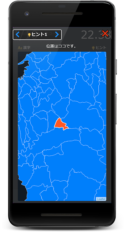Municipalities quiz is a quiz game app that guesses 1922 cities, wards, towns and villages nationwide from their shapes (silhouettes). It's difficult, but there are hints such as maps and population.