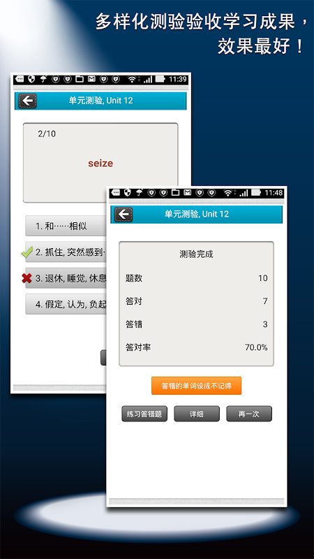 * 可将要加强的单词放入生词本,再特别加强记忆和练习。