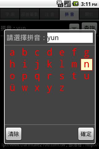 3. phonetic query: You can select the input you want phonetic, for example: "ㄩ ㄣ '" ==> program