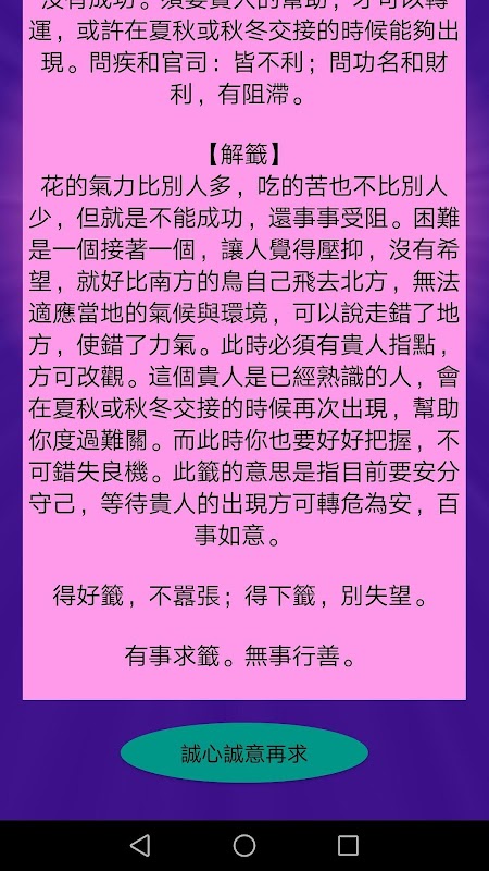 如果你心神恍惚,遇到事情時六神無主,無法好好判斷和下決定,不妨用手機求籤,問問前程,只要心誠則靈,而且有求必應,趨吉避凶。