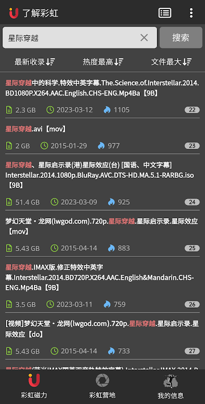 Rainbow Magnetism is a resource search APP, which provides magnetic search, BT search, seed search, movie collection, and more functions will be launched in succession.