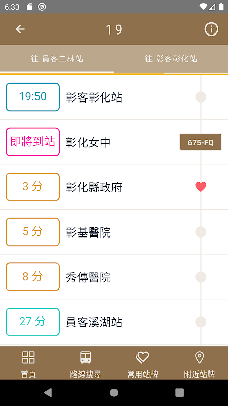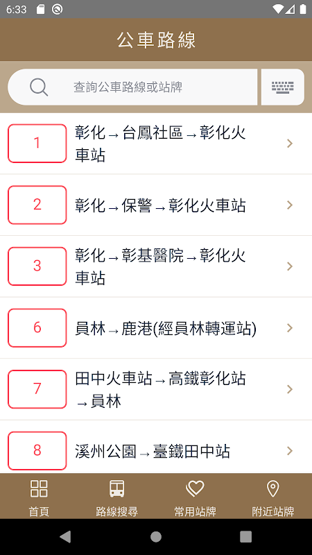 1. Route search: Provide real-time dynamic information of Changhua area, and quickly check estimated arrival time.