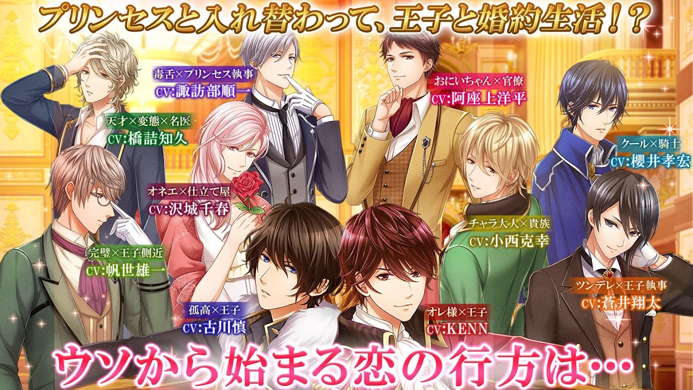 A maiden game where you can enjoy love with a prince, "Renai Princess ~Fake Princess and 10 Fiancés~" is now available!