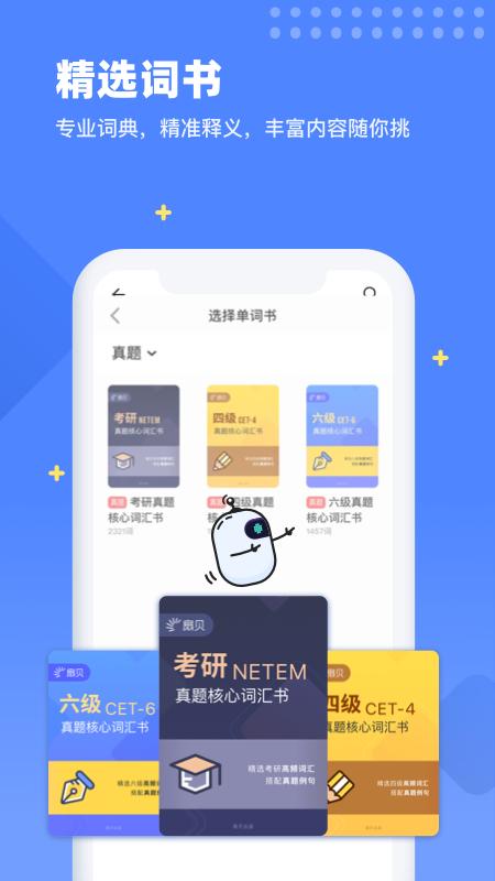 【海量词库】 四六级,专四,专八,考研,托业,托福,雅思,高考英语,BEC, GMAT,SAT,TED,自考英语,新闻英语,商务英语... 应有尽有。