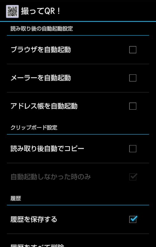 このアプリではカメラを使ったQRコードの読み取りに使用します。