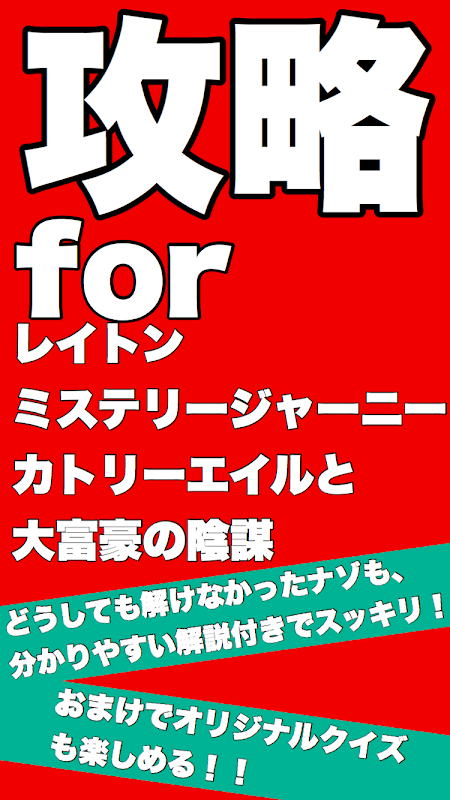 このアプリは、アプリ【レイトン ミステリージャーニー カトリーエイルと大富豪の陰謀】の非公式攻略アプリです。おまけでクイズもついています。