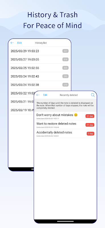 ・Deleted notes are stored for 30 days