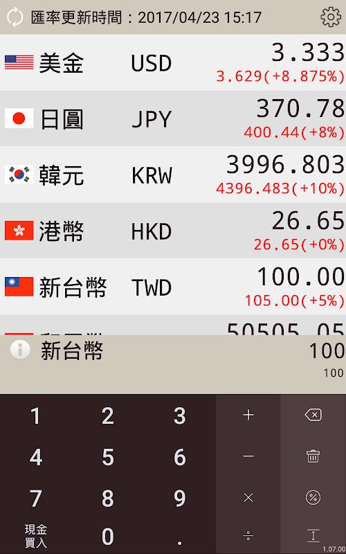 旅遊匯率計算小幫手(匯率計算機) 1.07.01