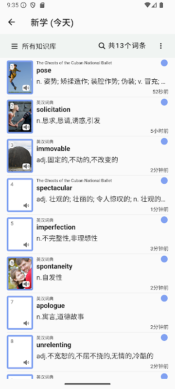 6、改进了学习页面(强化记忆)的用户体验,可选“简洁”、“记忆”及“研习”模式;