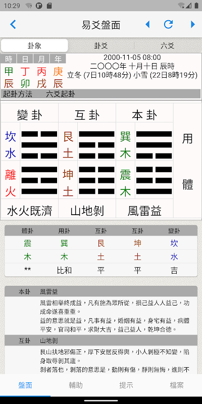 3. Arrange the five elements and four pillars corresponding to the time of the hexagram to give more reference information for divination.