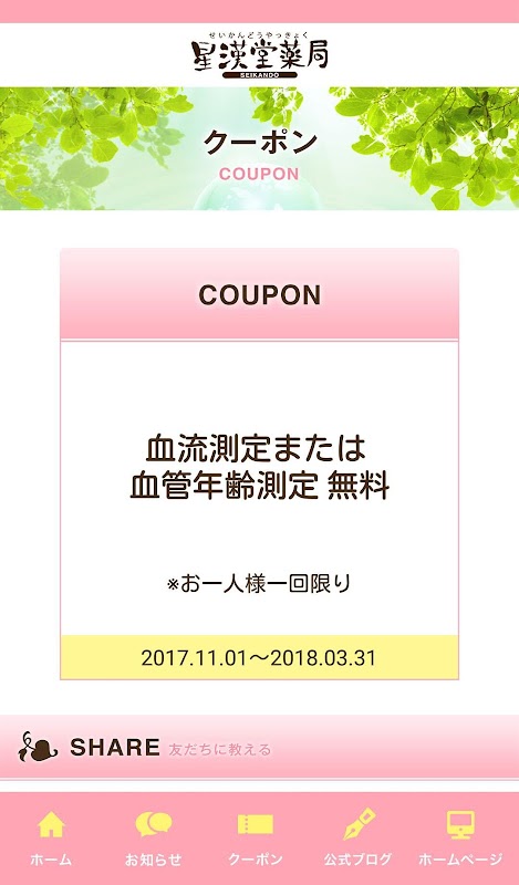 群馬県太田市で皆様の笑顔と心と身体のアドバイスをしております【星漢堂薬局】の公式アプリです。