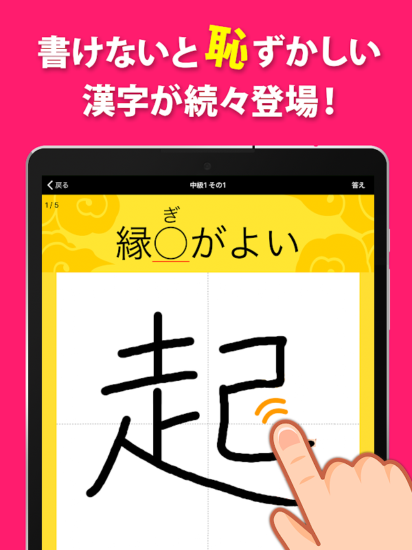 書けないと恥ずかしい脳トレ漢字クイズ(手書き漢字ゲーム)