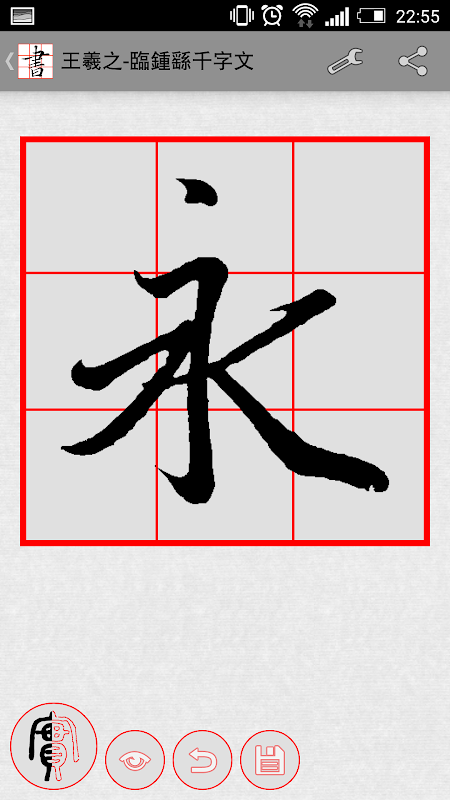 3. 可設定字帖是否顯示紅色中空字帖,跟真的書法練習本相同。
