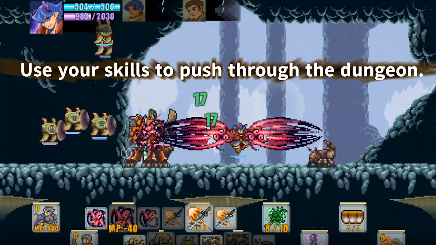Skills include weapons, magic, fellow characters, summoning monsters, etc., and have a variety of characteristics. Think of combinations to find your own strongest tactics!