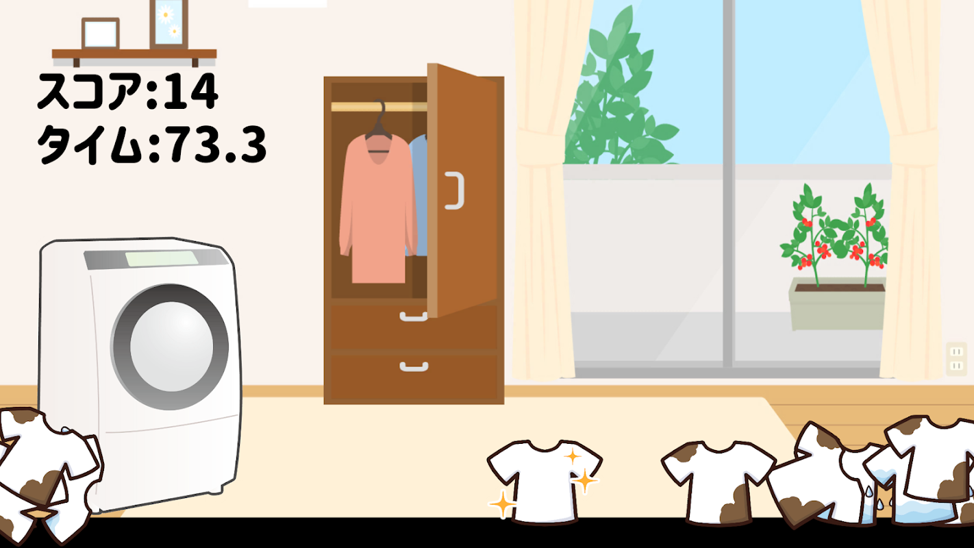A simple game where you sort dirty clothes into the washing machine, wet clothes into the veranda, and clean clothes into the closet!