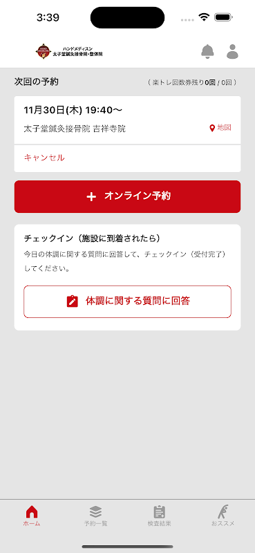 This is a reservation my page app that can be used at Hand Medicine Co., Ltd. and Taishido Acupuncture and Orthopedic Clinic.