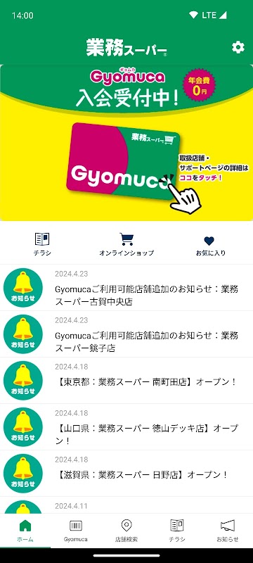 Find a nearby Gyomu Super with the Gyomu Super official app!