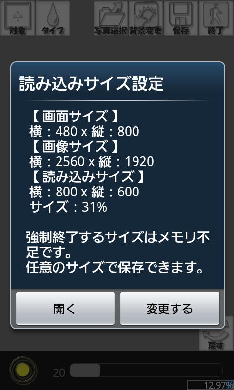 ただし、機種によって、利用できるメモリ量が大きく異なるので、どのサイズまで読み込めるかは、この動作確認版で、実際に試して確認してください。