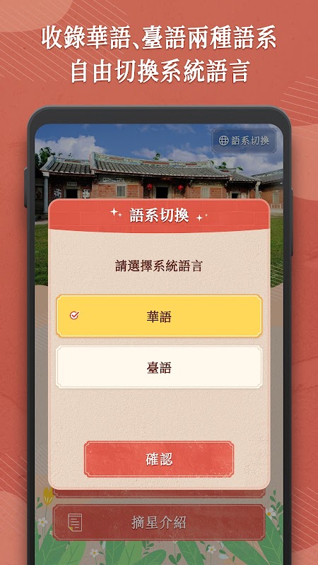 The system provides two languages: Chinese and Taiwanese. The display can be switched according to personal preferences, and the audio guide content in the corresponding language can be played.
