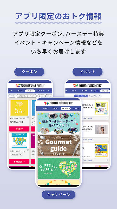 An app that makes shopping at Yokohama World Porters fun and affordable.