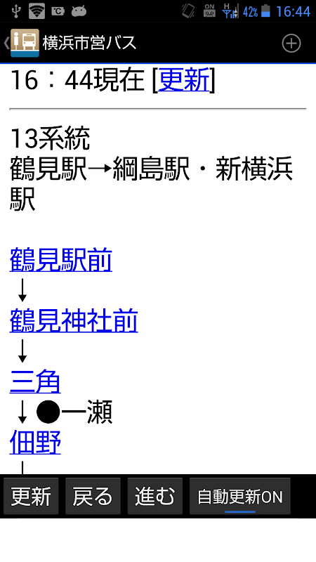 運行状況を表示するときは、30秒毎に自動更新をかけるので表示したままにしておけば今バスがどこにいるのかわかります