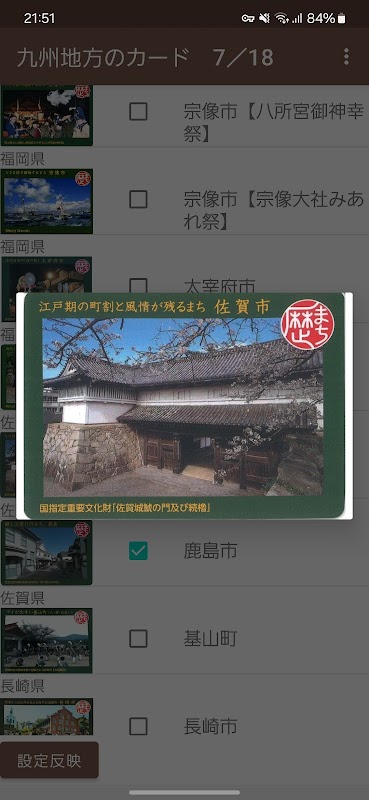 Displays locations on the map where you can obtain historical town cards (historic town development cards). You can find out where to get the unobtained Rekimachi Card.