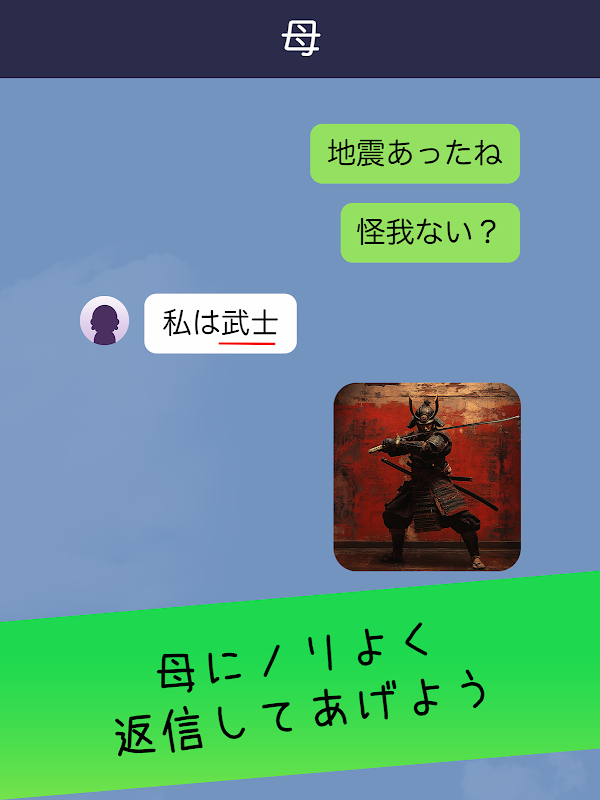 My mother, who finally bought a smartphone, sends me a chat with an outrageous text.