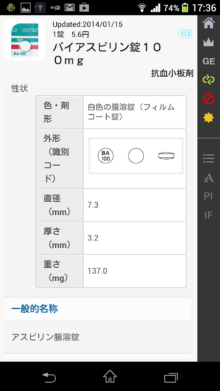 単にオンラインでPMDAサイトの表示結果を表示したり、PDFを表示するだけの同種アプリに満足ですか?。本アプリはアンプルから点滴薬に至るまでほぼ全ての医薬品の写真を収録しています。また日常の処方で頻繁に参照される薬価や副作用、禁忌などはわかりやすく独立して表示される他、疾患ごとの処方実績に基づいた処方実績ランキング、写真はヒートなど包装写真だけでなく一包化用のバラ品ボトルも収録するなど全てが医療者仕様となってます。