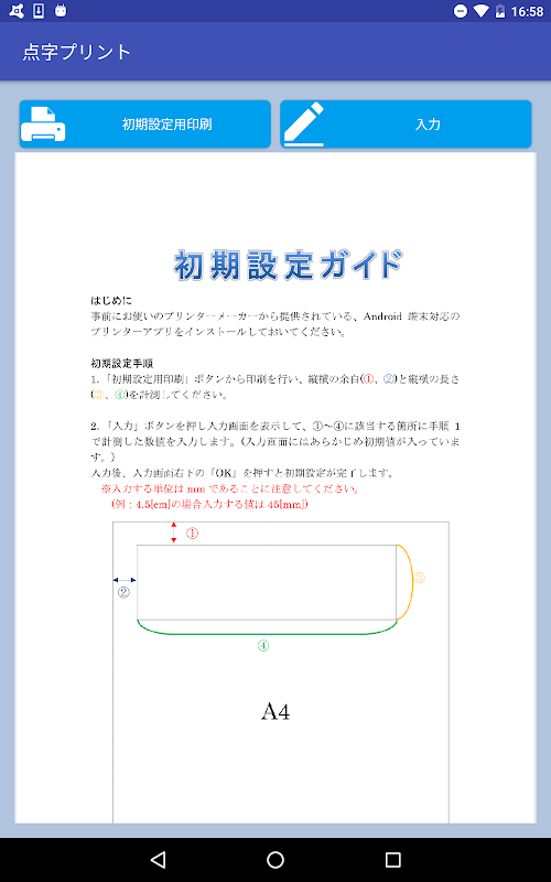 本アプリは、ひらがな・カタカナ・アルファベットを点字に変換し、お使いのプリンターでの印刷を行い、点字器を使って点字での手紙・はがきを書く方をサポートすることを目的とするAndroidアプリです。