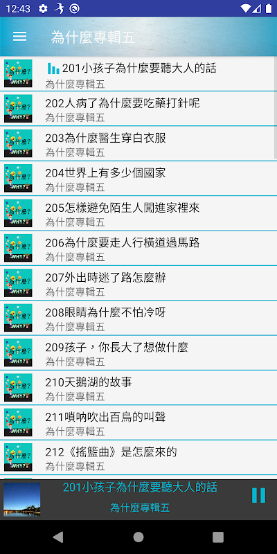 什麼有聲書app供家長播放使用,在每個孩子的探索世界的過程中,總有無數個好奇的「為什麼?」等待世界給予解答. 為什麼有聲書app 特別收集孩子們最感興趣的問題,透過生動不枯燥的講解方式,在滿足孩子對知識的渴望的同時,也培養了孩子們獨立思考的邏輯能力和研究的興趣。