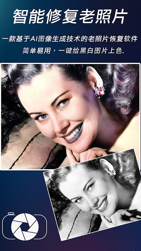 Our app features powerful algorithms and advanced tools to restore your photos to their best condition. Our black and white photo colorization function uses AI technology to accurately restore the color of the photo, making the photo more realistic and vivid. Our old photo repair feature can easily remove blemishes, stains, scratches, etc. to restore your photos to their original appearance. And our image enlargement function allows your photos to achieve higher clarity and detail without distortion.