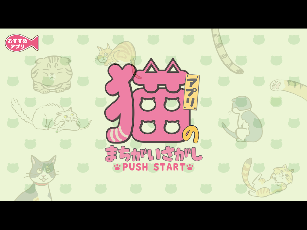 猫しか出てこないまちがいさがしの決定版!左右のイラストをタッチしてまちがいを探そう!優しい問題から超難問まで楽しめます。