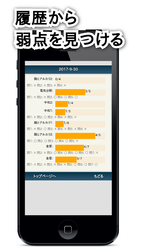In addition, the history of each question is recorded as XX and points, which helps you find weak points.