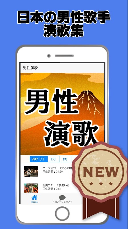 【演歌動画集】日本の男性演歌歌手の人気曲を多数集めたアプリです。映像で青春が蘇ります。懐かしい曲を聞いてストレス発散しましょう。高齢者向けアプリです。