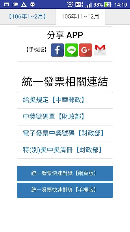 The program will automatically update the latest uniform invoice lottery numbers, and provides quick links to the award program