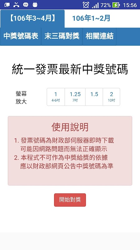 This program will be automatically updated by the latest Ministry of Finance server uniform invoice lottery numbers, and provides end three yards quickly sort the award, easy on the prize