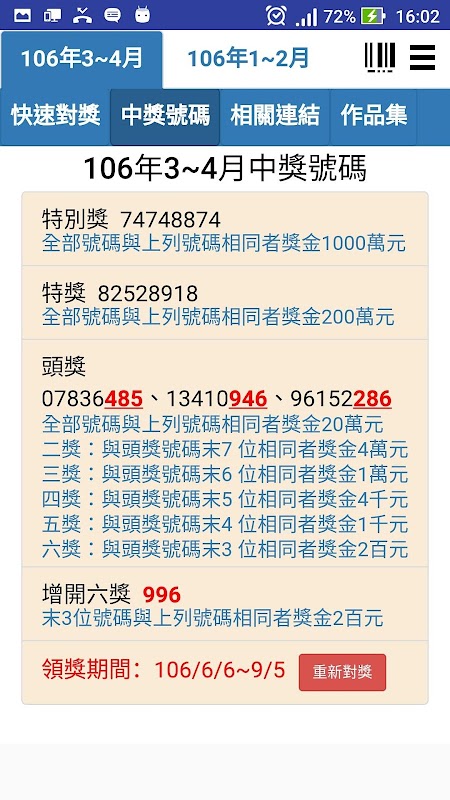 * 每單月25日下午開獎後自動由財政部伺服器更新中獎號碼
