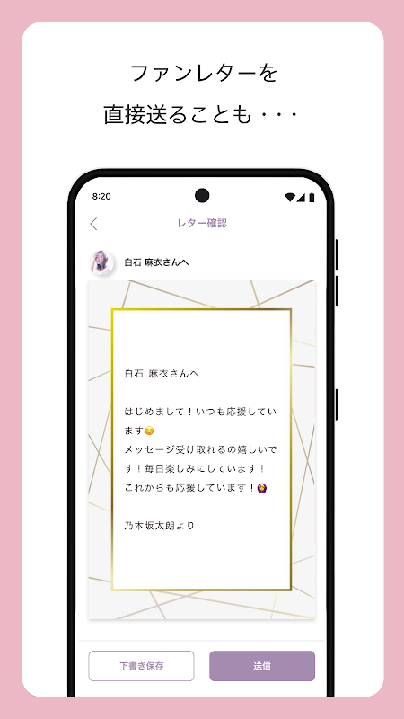 This is the official app where you can receive messages from Mai Shiraishi! You can also send fan letters and browse the official website!