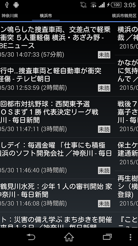 App that lists by region Kanagawa Prefecture News It will list the local news in Kanagawa Prefecture. It is listed by city.